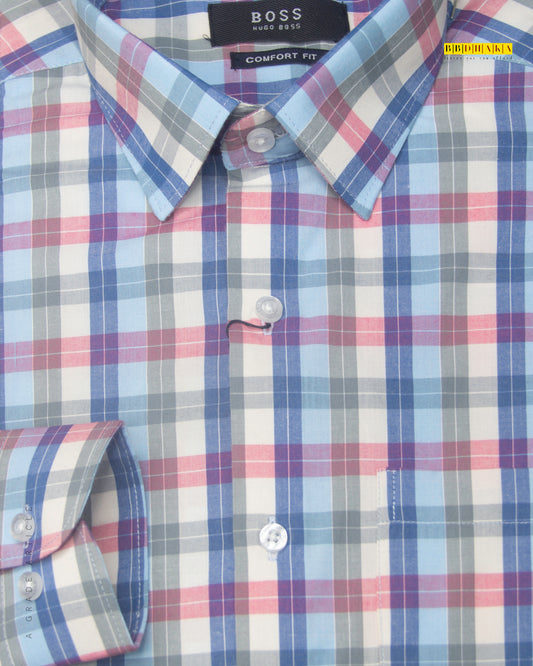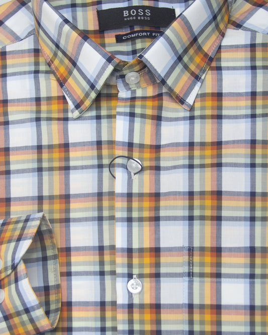 Navy Plaid Full Sleeve Check Shirt - BOSS