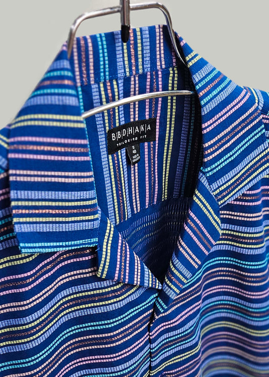 Royal Blue Multicolor Half Sleeve Cuban Shirt - New Arrival
