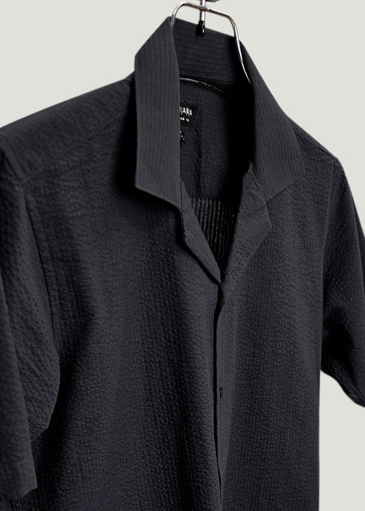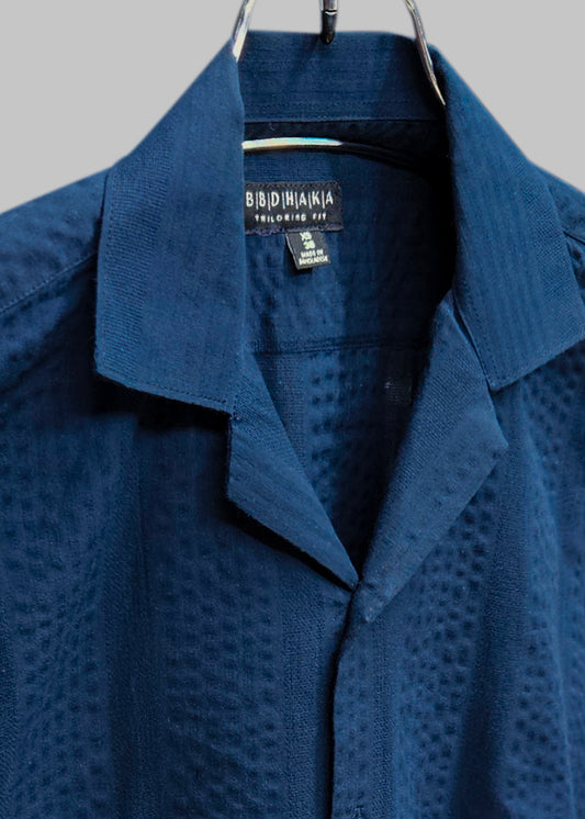 Navy Pattern Stripe Half Sleeve Cuban Shirt - New Arrival