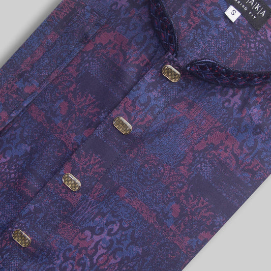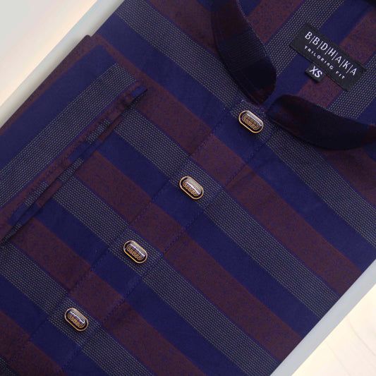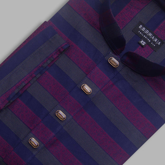 NAVY & PURPLE VERTICAL STRIPE JACQUARD PANJABI - Most Demanding