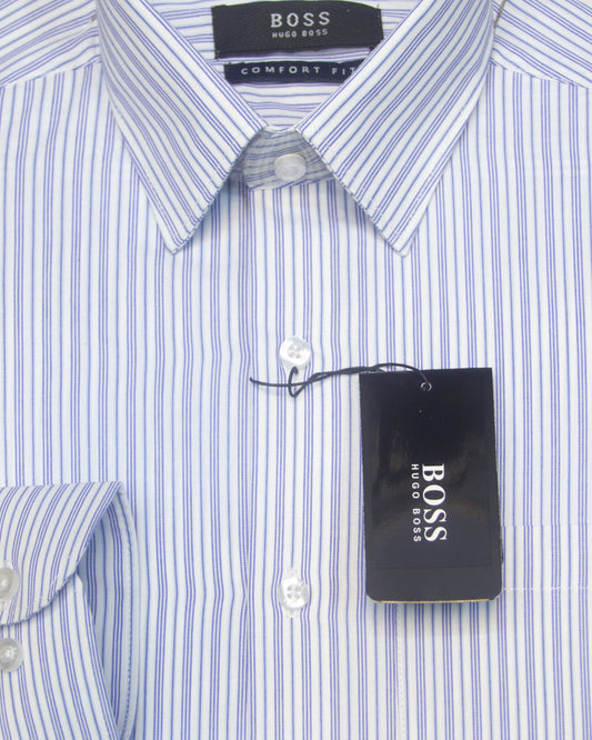 White & Blue Payline Stripe Supreme Cotton Blend Shirt - Wrinkles Free (Product Code: 14673)