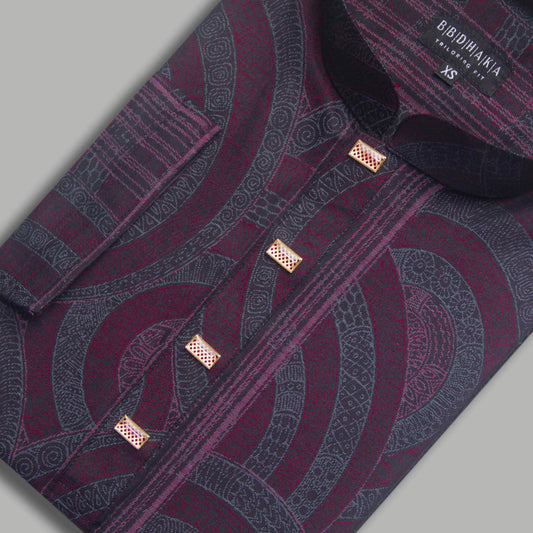 DARK MAROON PATTERN JACQUARD PANJABI - Most Demanding