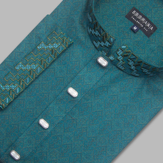 OCEAN GREEN PATTERN JACQUARD PANJABI - Most Demanding