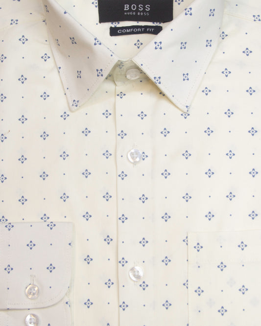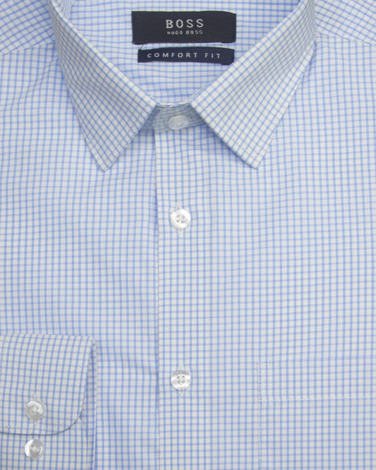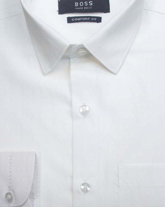 Crafted from premium cotton with stretch, this shirt offers all-day comfort and timeless style with its English spread collar and refined cuffs.