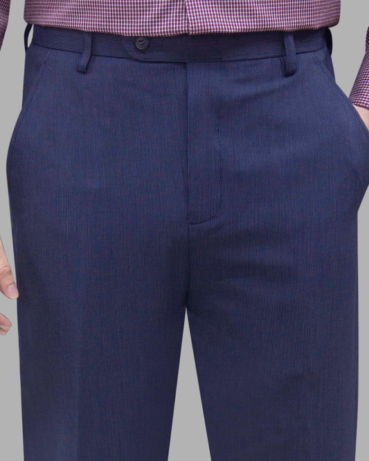 Navy Blue Dotted Stripe Formal Pant - New Article