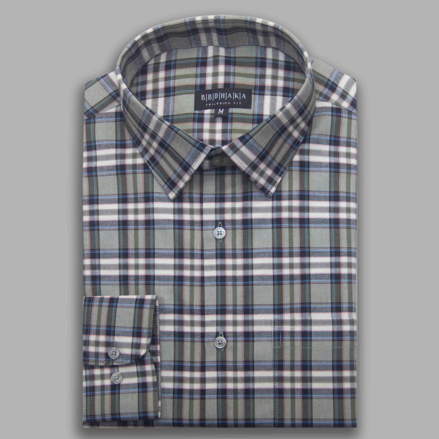 Navy Plaid Full Sleeve Check Shirt - BOSS