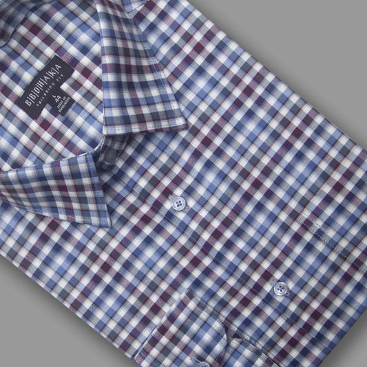 Blue-Purple Grid Check (Yarn Dying) - New Article (Product Code:13001)