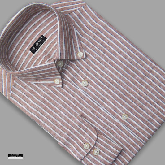 Beige Stripe Button-Down Shirt - Remi Cotton