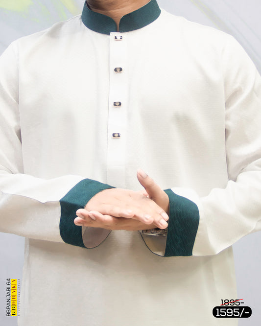 Gorgeous Pearl White Fancy Cotton Blend Panjabi