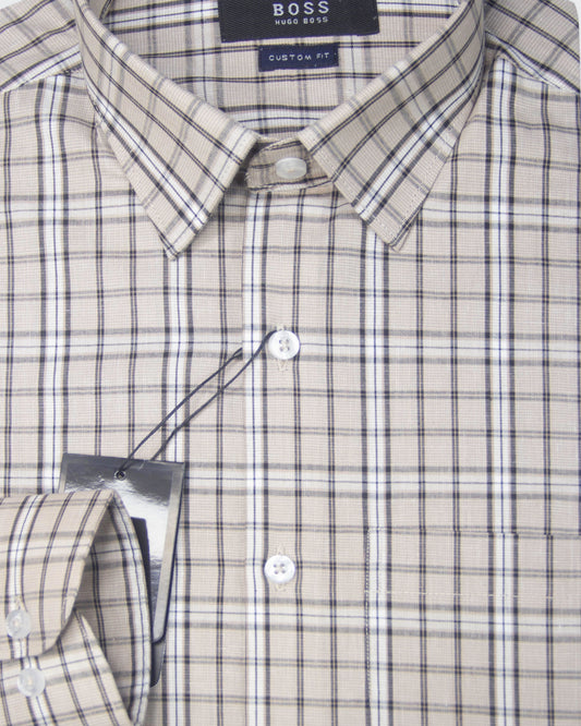 Coffee Bland Shade Box Check Shirt (Cotton Blend)
