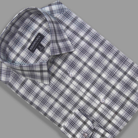 White and Navy box Check Shirt (Cotton Blend)