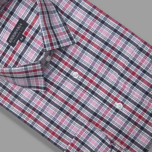 White & Maroon Multi Plaid Check Shirt - New Arrival
