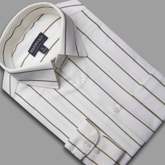 White Collar Cuff Formal Shirt : Light Brown Stripe - Product Code: 15004