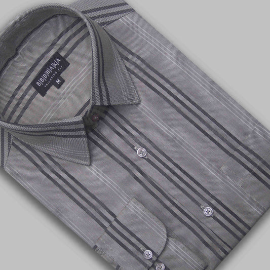 Executive Beige Stripe Formal Shirt (Yarn Dying) - New Article