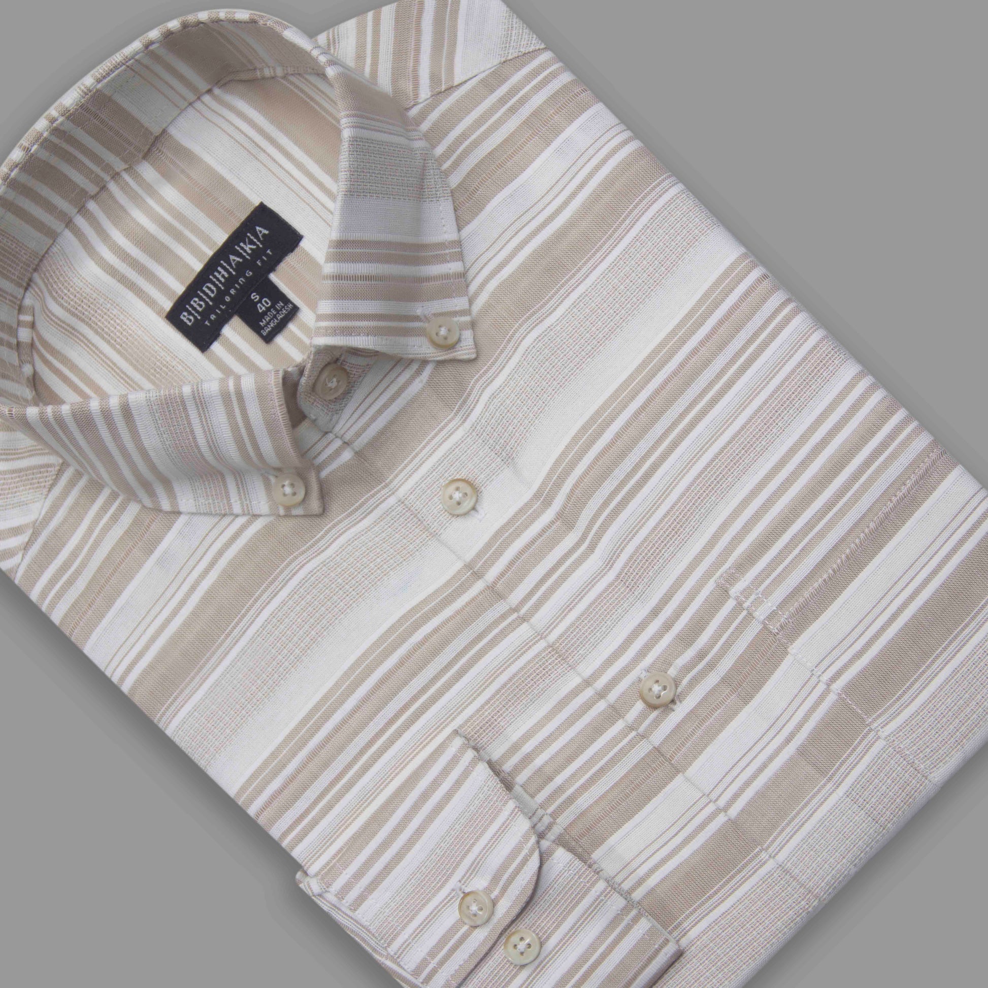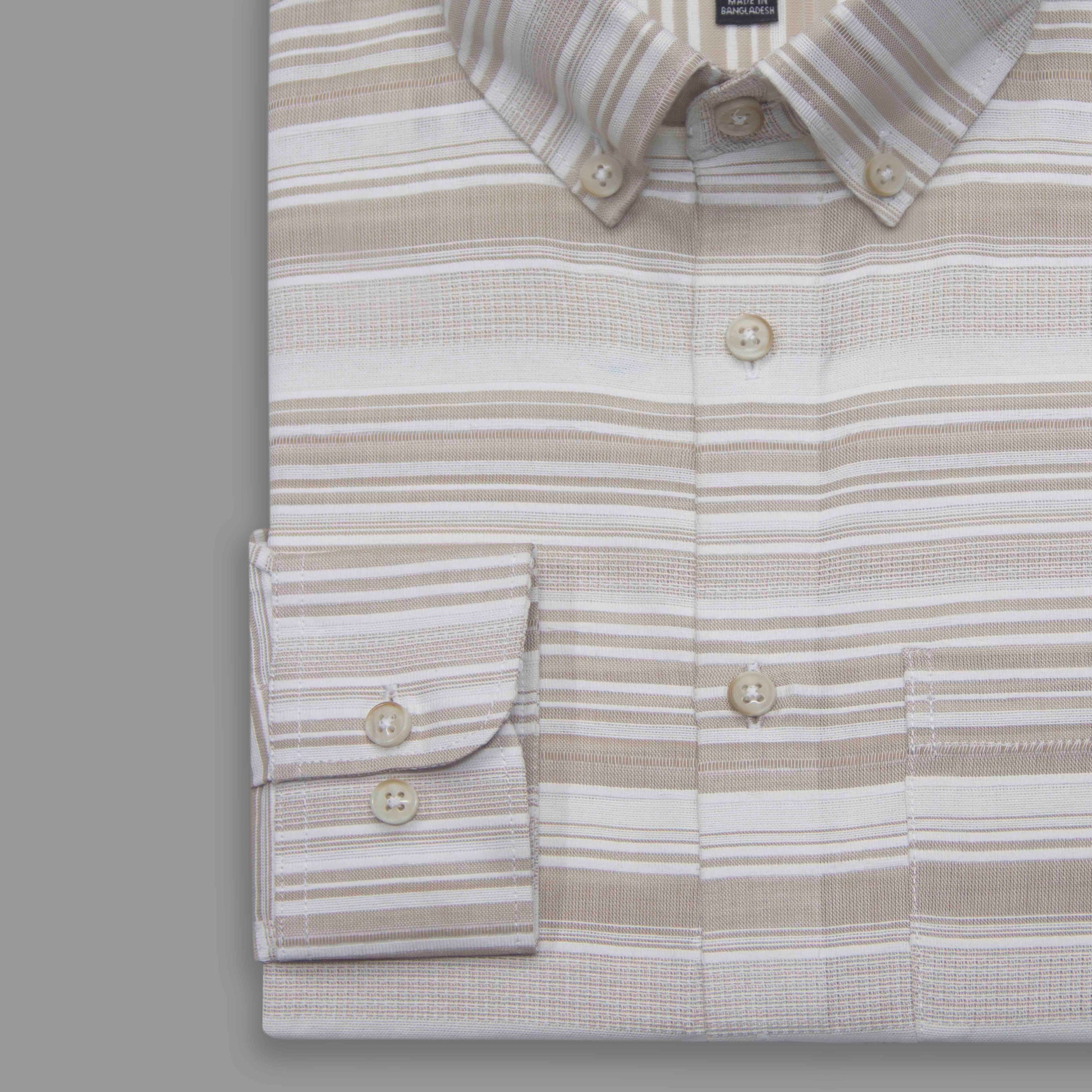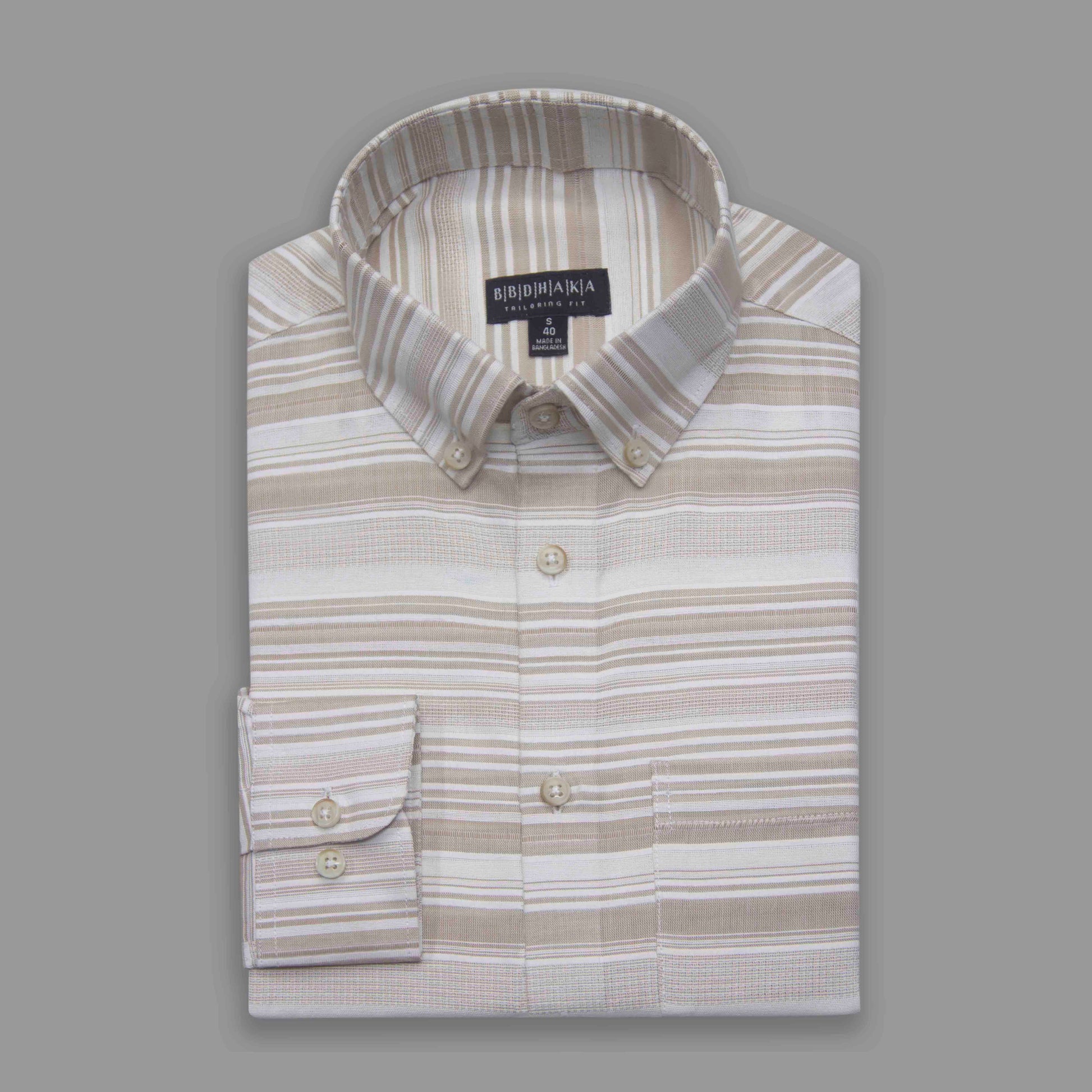 Beige & Grey Vertical Stripe Button-Down Shirt - Yarn Work