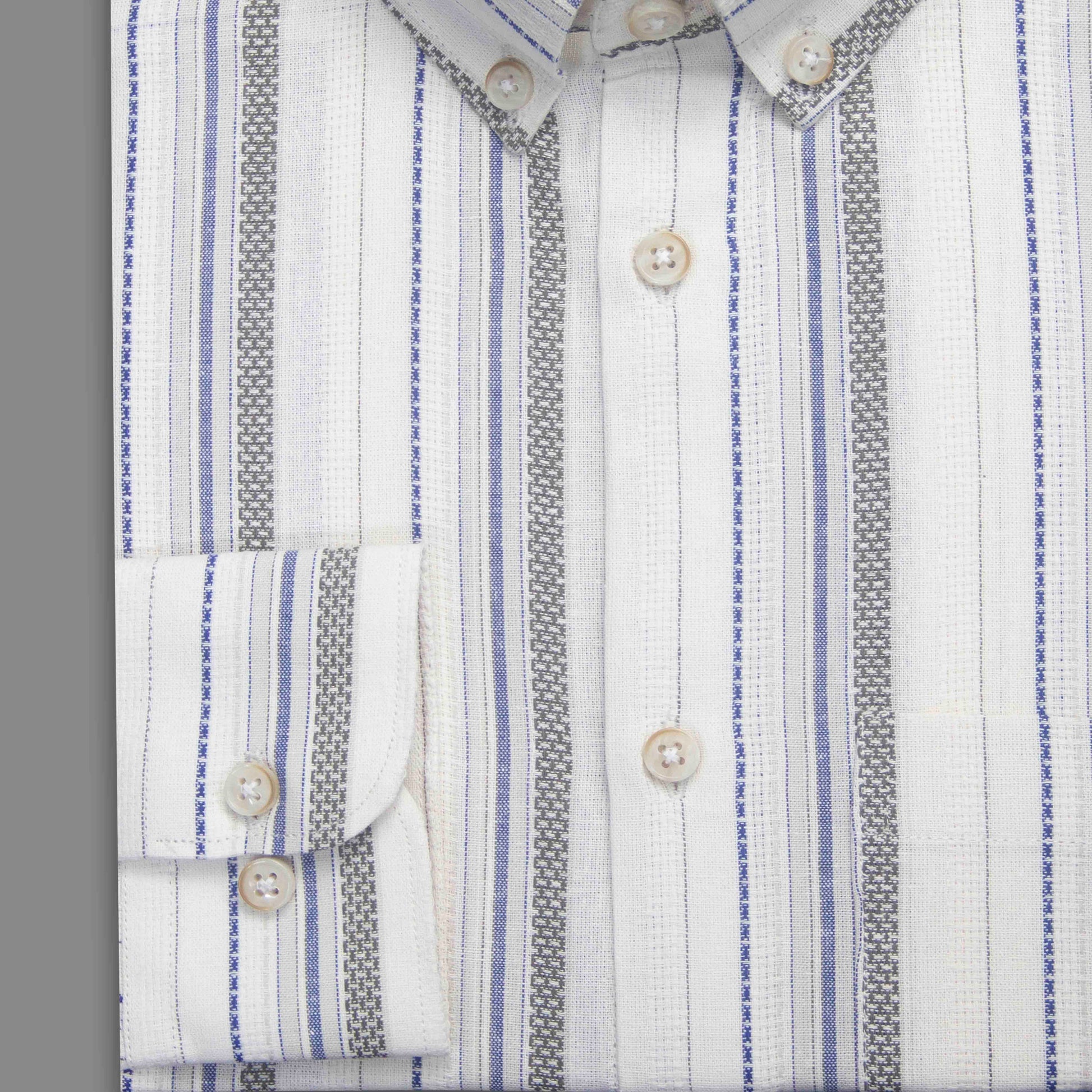 Beige Grey & Blue Horizontal Stripe Button-Down Shirt - Yarn Work
