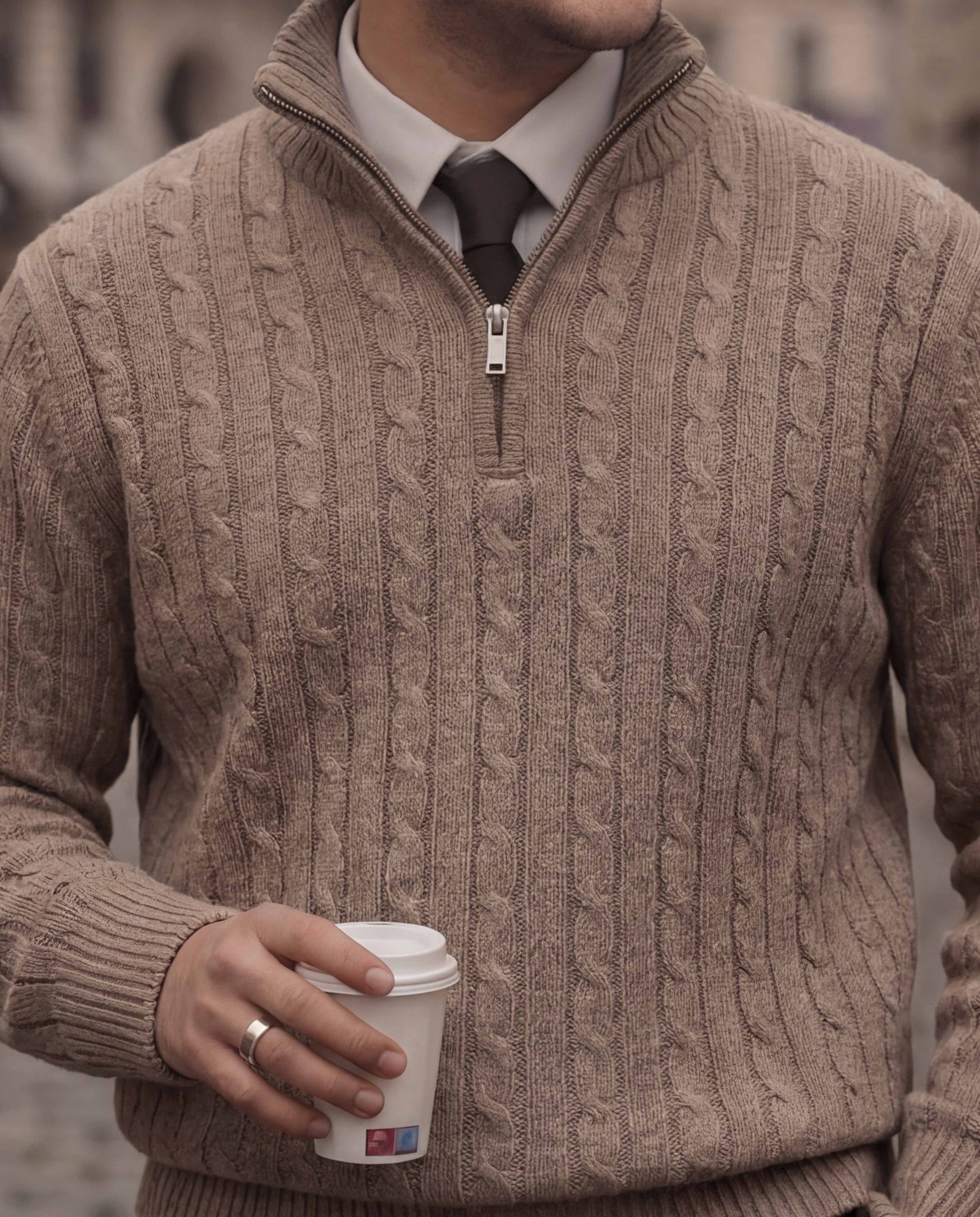 Brown High Neck Quarter Zipper Sweater - New Arrival
