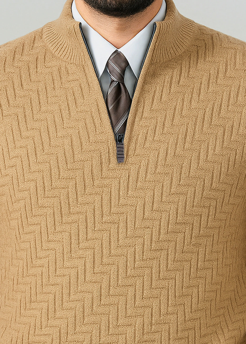 Camel Brown Quarter Zipper Sweater (TOP SELLING)