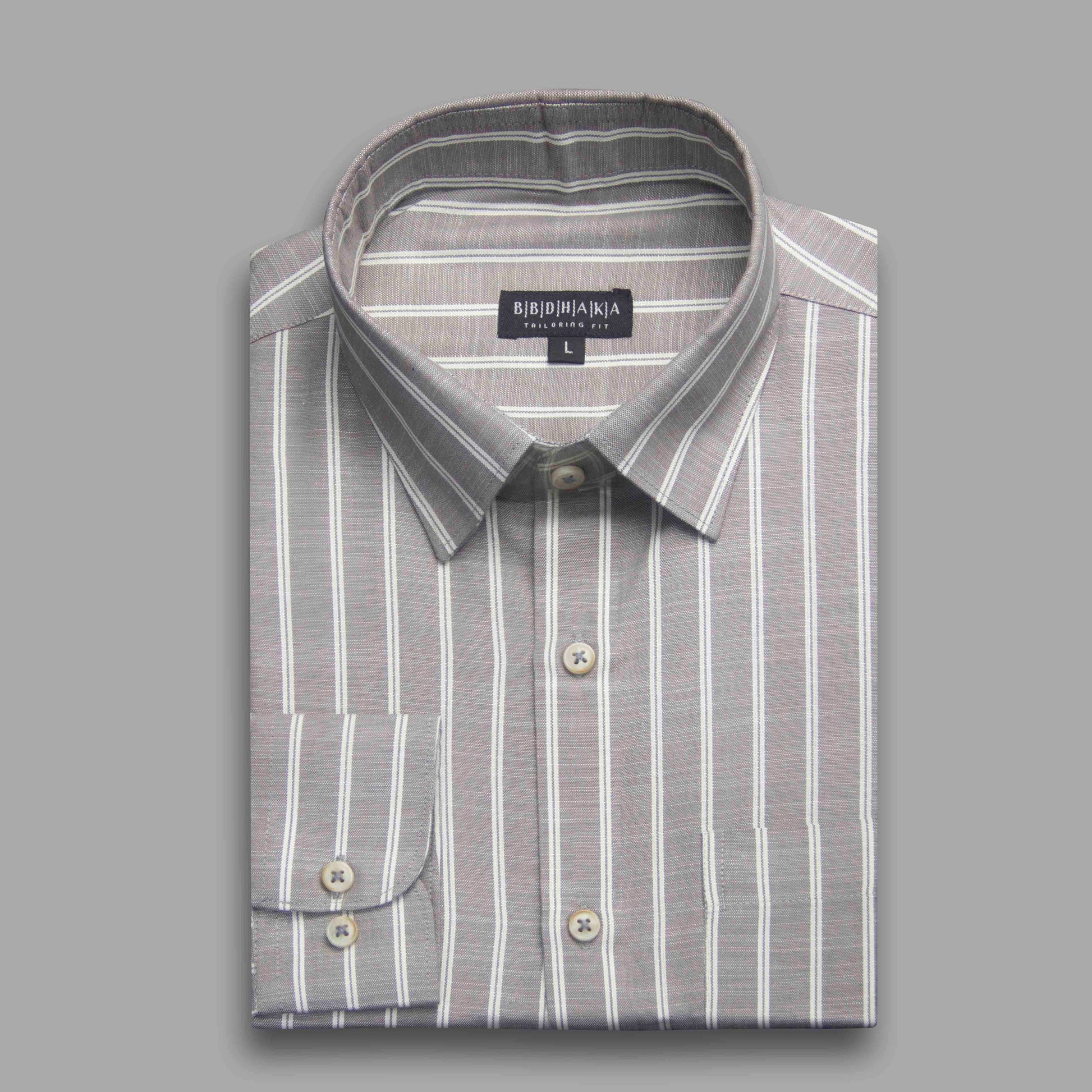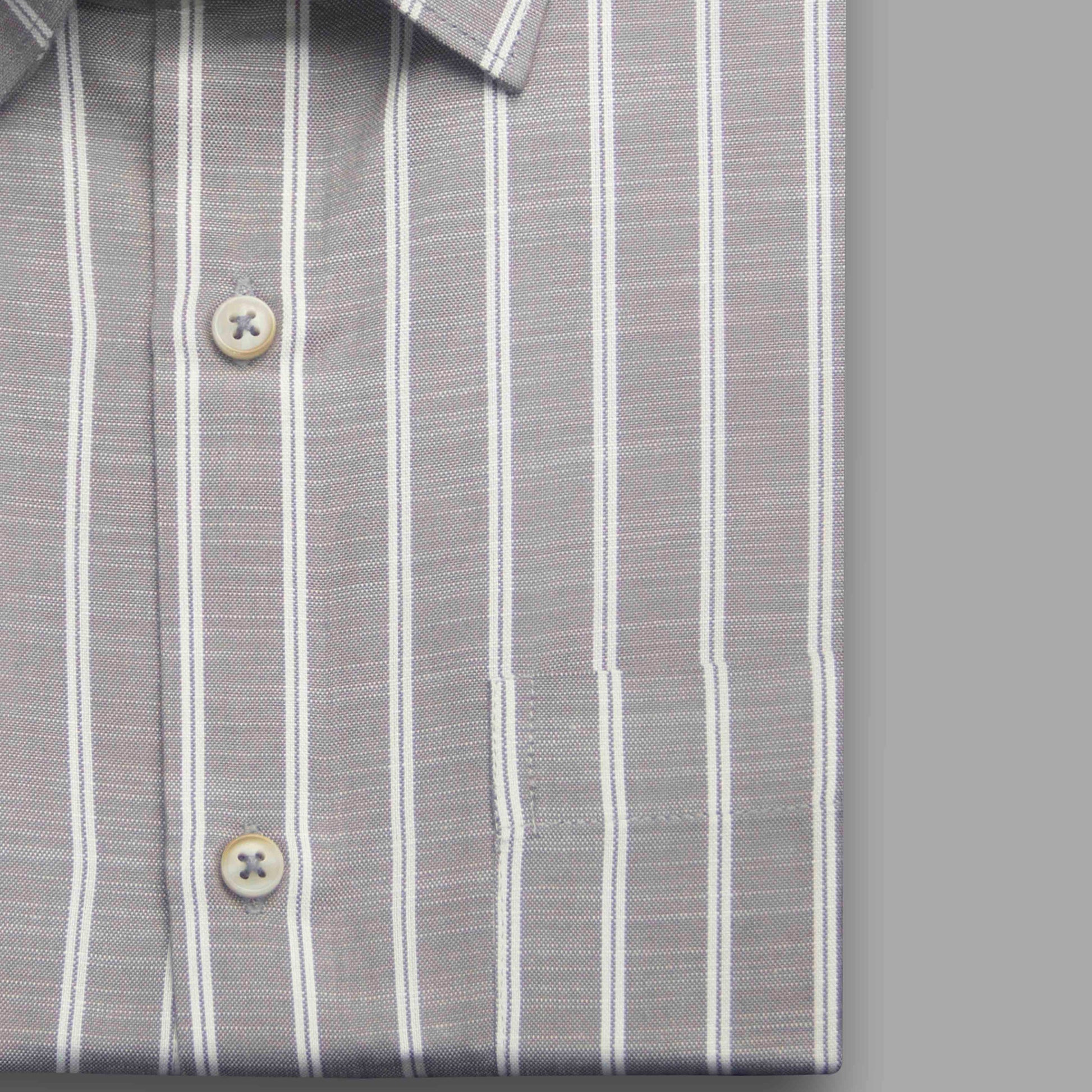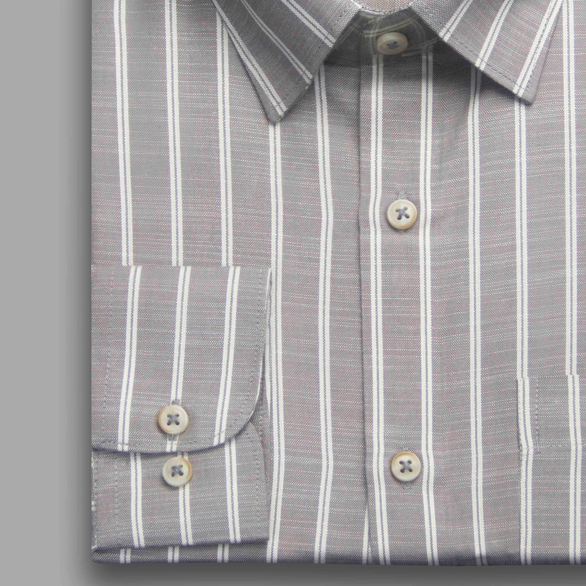 Grey & White Horizontal Stripe Button-Down Shirt - Viscos Cotton