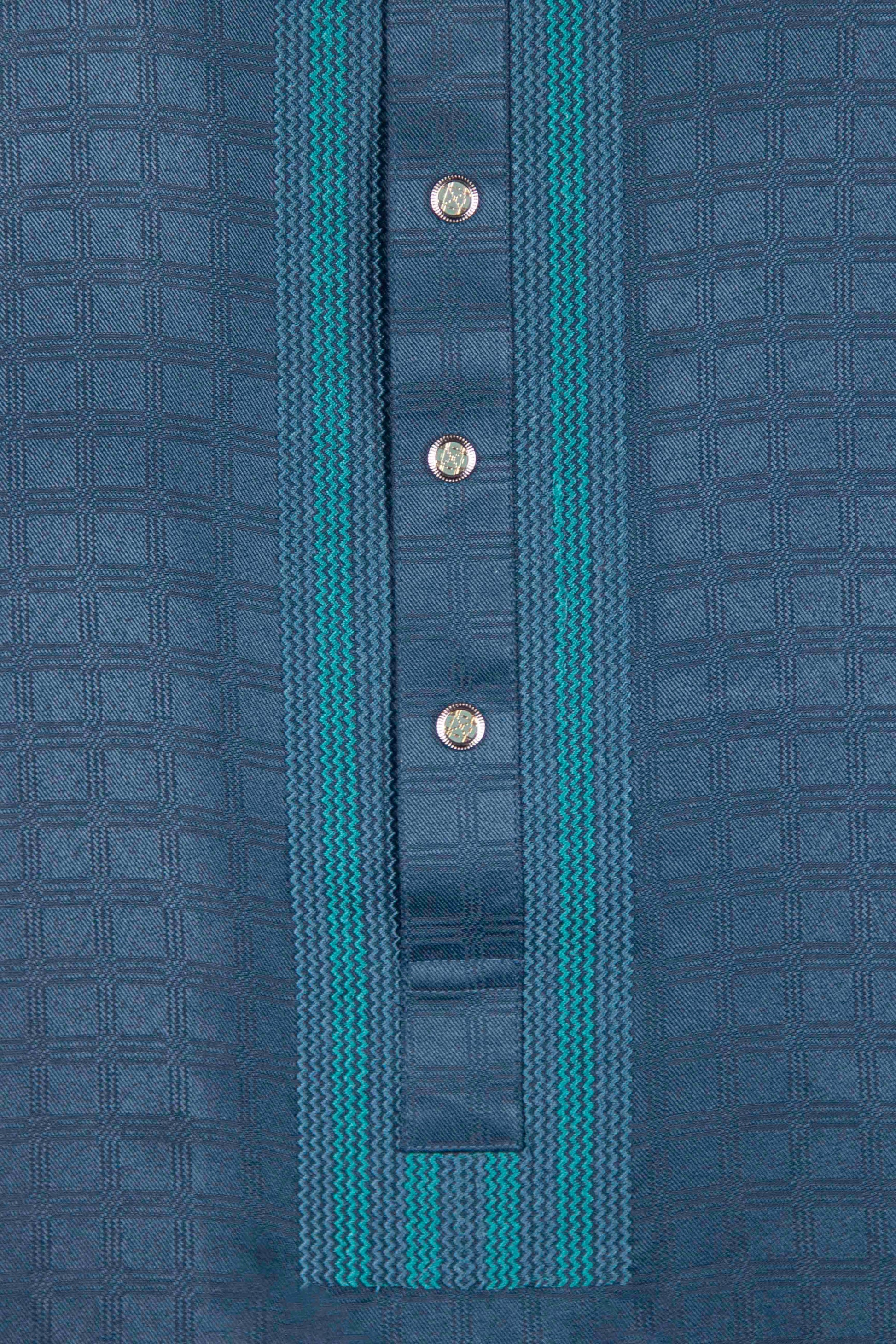 Ocean Blue Embroidery Fancy Cotton Punjabi New Article - CODE: 12203