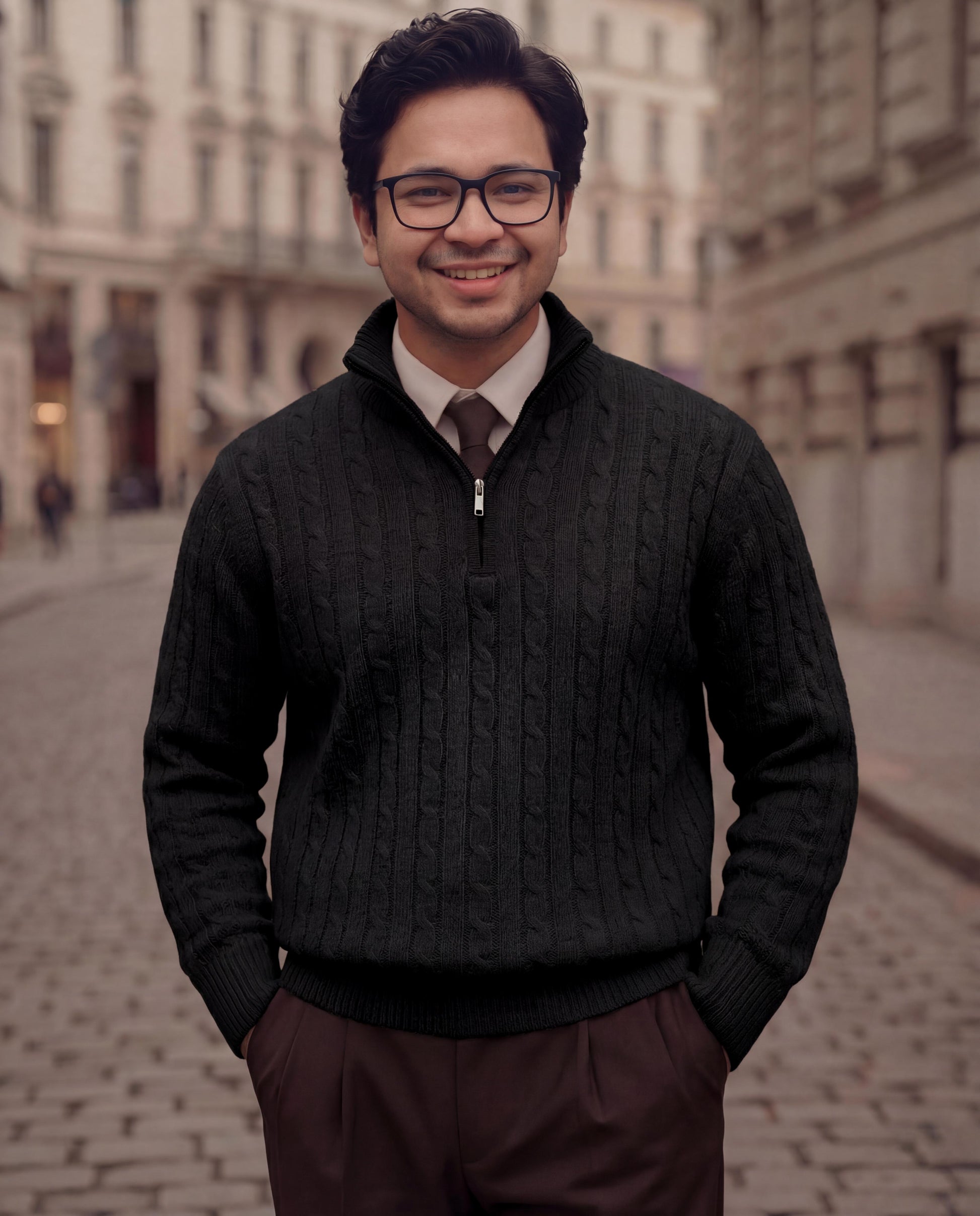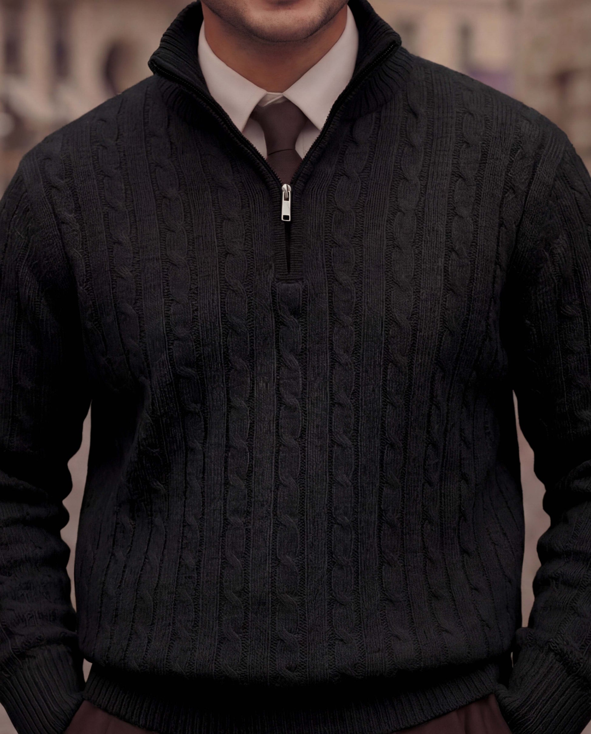Zed Black High Neck Quarter Zipper Sweater - New Arrival